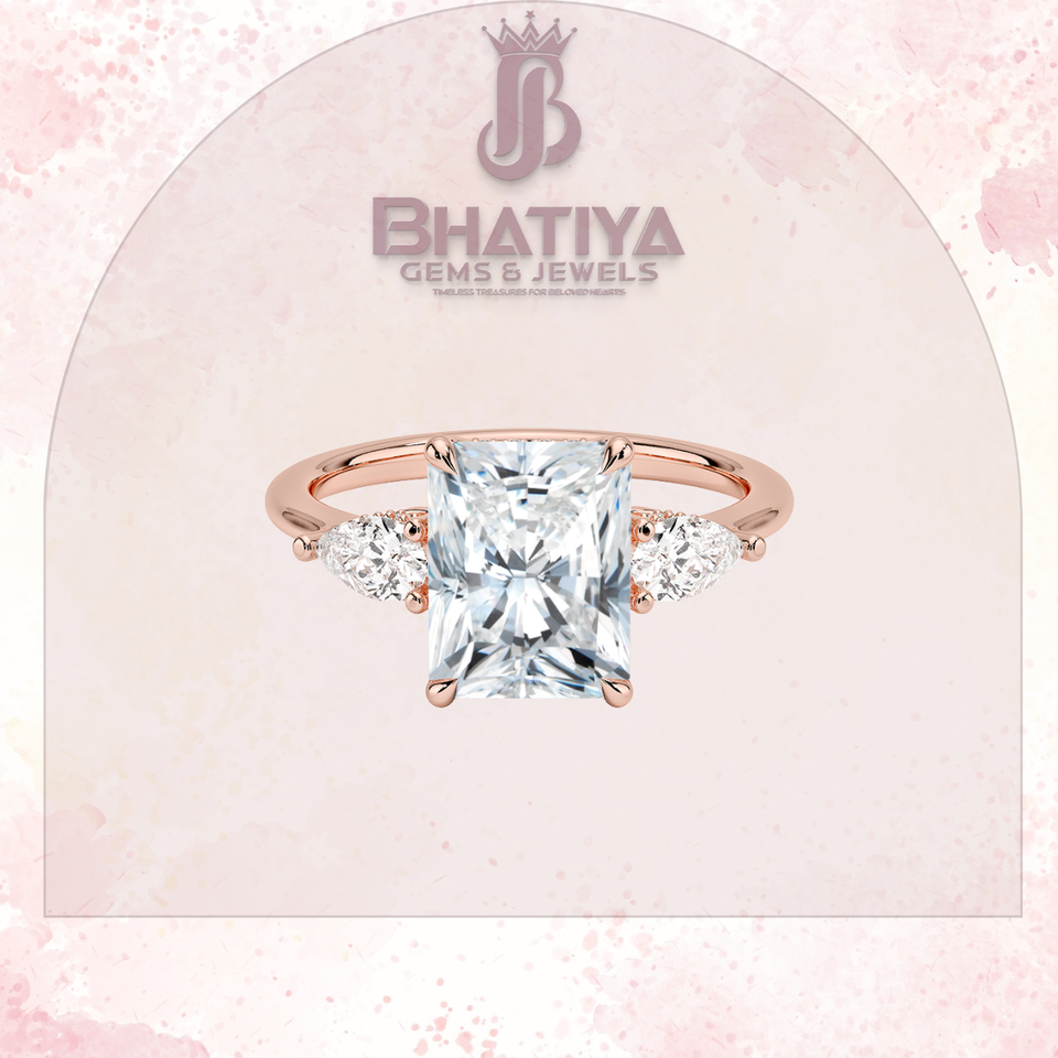Radiant Cut 1-3 CT Center Stone Lab Grown Diamond Bague de fiançailles Solitaire Bague à trois pierres Cadeau de Noël pour les femmes