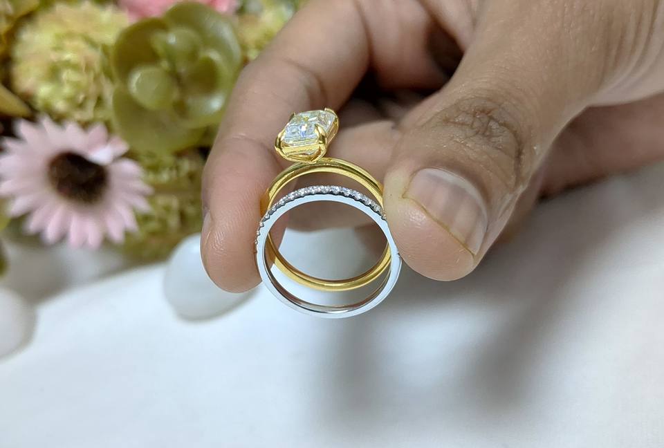 nom ou mots:Bague en or jaune avec diamant de laboratoire