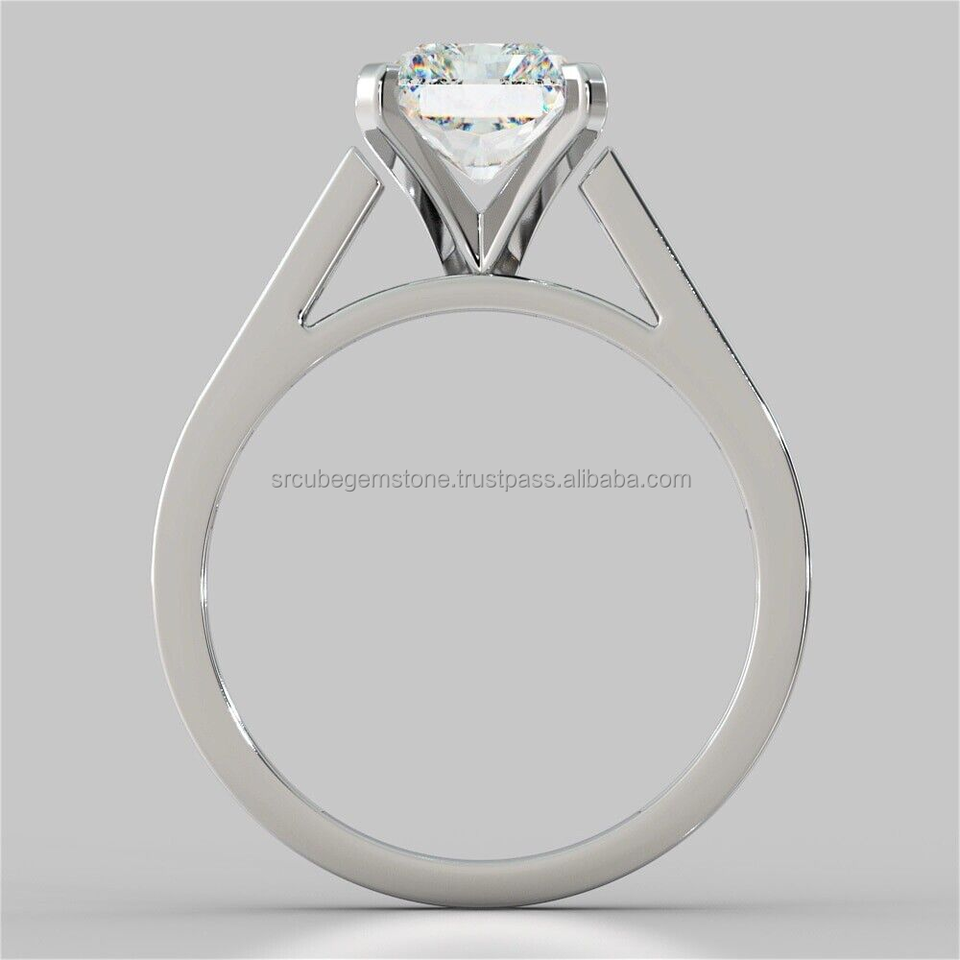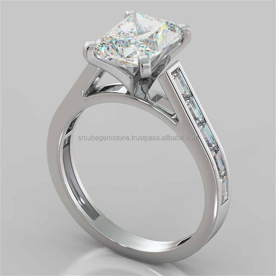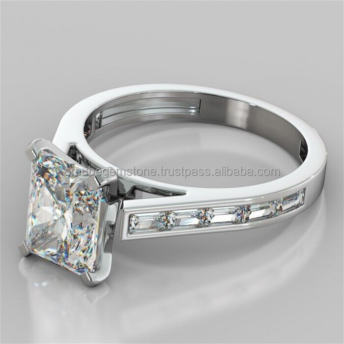 Bague de fiançailles solitaire taille radiant en argent sterling 925, sertie en canal, diamant certifié IGI pureté VVS, plaqué or