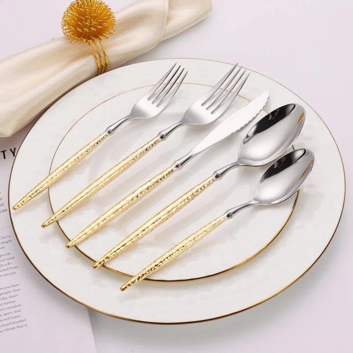 Ensemble de couverts rayonnants en acier inoxydable fini miroir avec poignée en or couverts élégants pour dîner présentation de cadeaux de fête de mariage