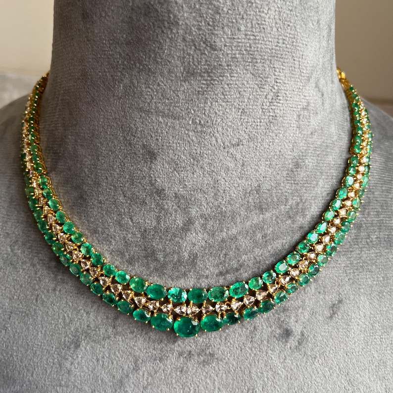 Collier à lueur émeraude rayonnante en or jaune 14 carats fabriqué pour mettre en valeur la beauté verte naturelle et la brillance de luxe Looks élégants et parfaits