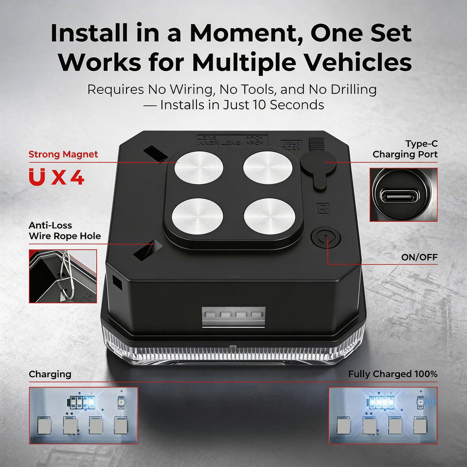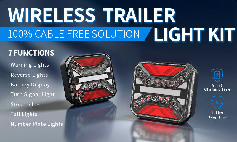 Kit de feux arrière magnétiques sans fil à LED pour remorques, camping-cars, bateaux, camions, portée radio 30 mètres