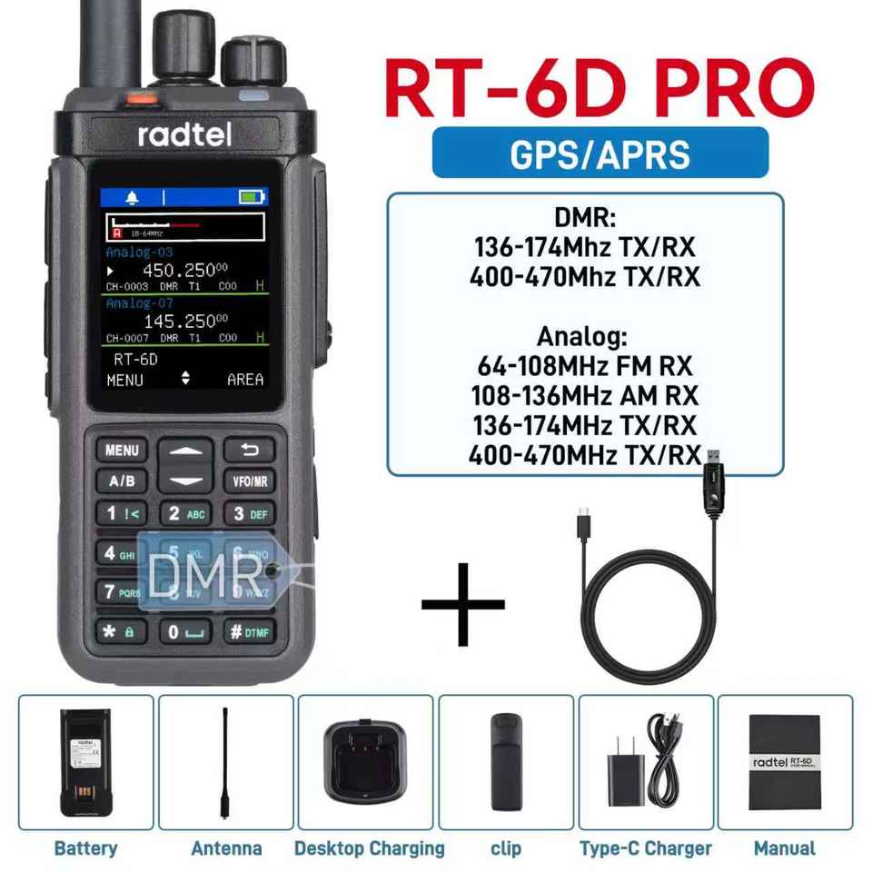Radtel RT-6D PRO Dual Band DMR Walkie Talkie GPS/APRS 500K Contacts Dual Time Slot Tier 1 + 2 Ham pour Radio 10km Portée 4G