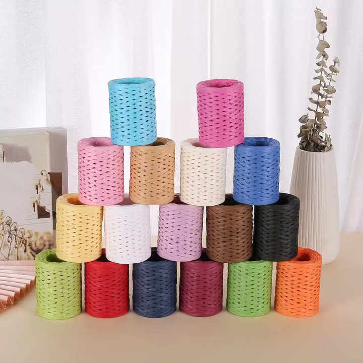 Fil de papier raphia pour décoration de fête, emballage cadeau, sac, chapeau, panier, artisanat, coussin, DIY, crocheté