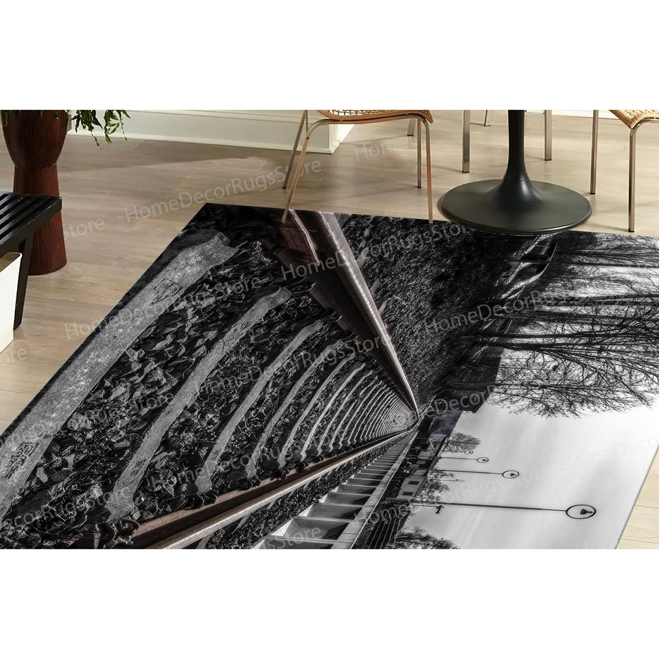 Tapis imprimé paysage ferroviaire, tapis épais pour décoration de bureau intérieure, tapis cadeau, tapis en chenille