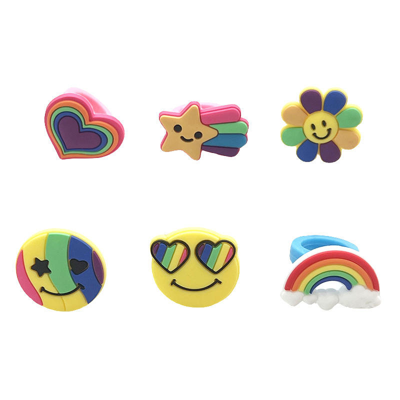 Anneau pour fille en forme de cœur en caoutchouc souple en PVC arc-en-ciel pour enfants, cadeau quotidien pour fête
