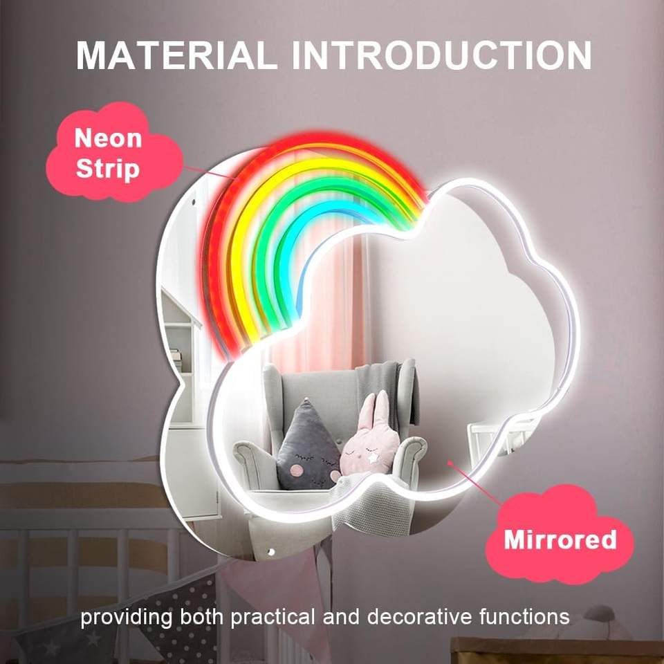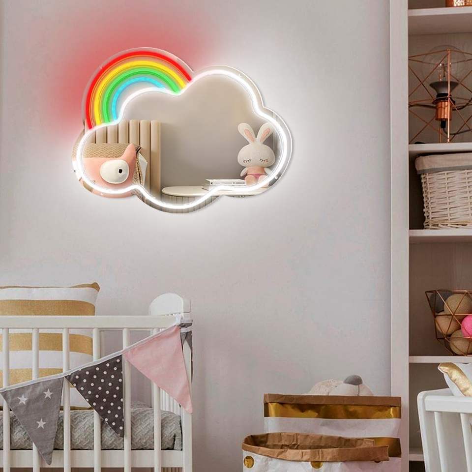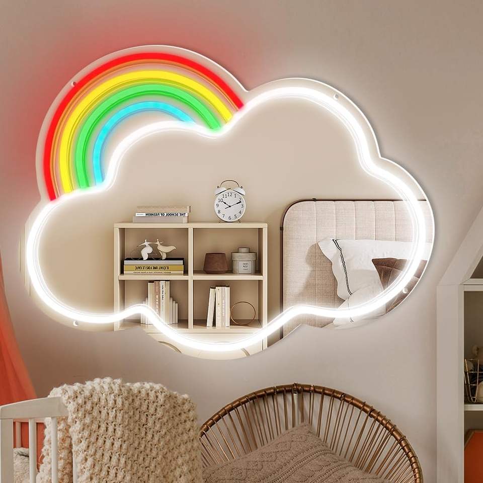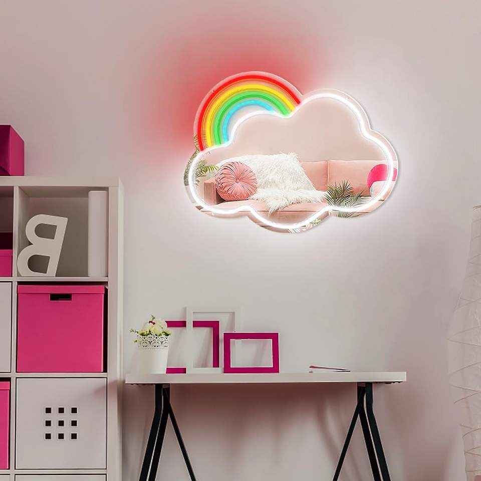 Panneau de miroir au néon arc-en-ciel nuage, panneau de miroir mural coloré mignon avec gradation pour chambre, commode, décoration de chambre d'enfants