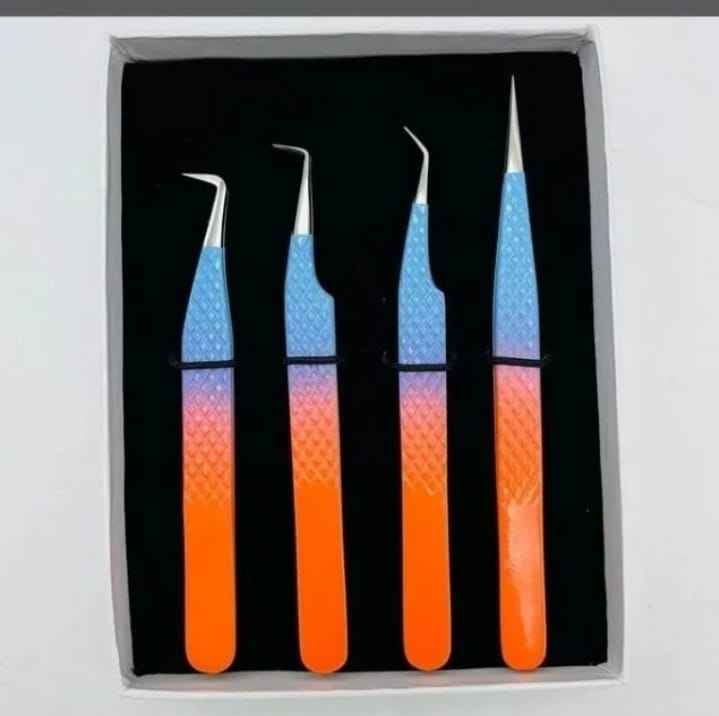 Pinces à épiler pour extensions de cils en acier inoxydable à pointe en fibre personnalisée de couleur arc-en-ciel - Pointe dentelée de précision antistatique durable