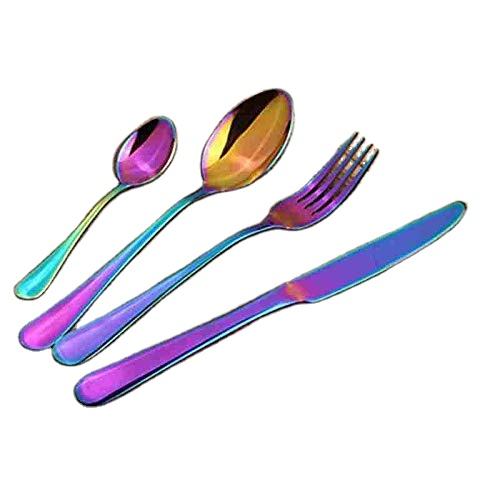 Ensemble de couverts de couleur arc-en-ciel en acier inoxydable miroir, design tendance pour les mariages, les événements, les anniversaires et les repas spéciaux
