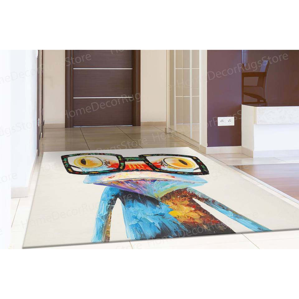 Tapis imprimé grenouille arc-en-ciel avec lunettes : tapis tendance antidérapant, tapis fin non tissé