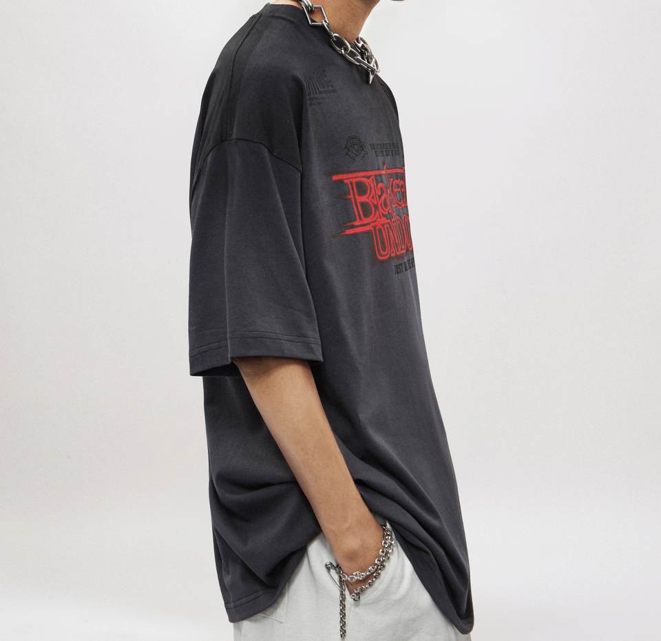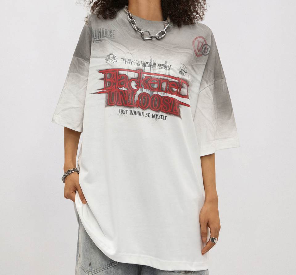 Rainbow Gradient Spray Paint T-shirt à manches courtes pour hommes Retro Letter Printed Streetwear Style Low quantité minimale de commande Loose Fit