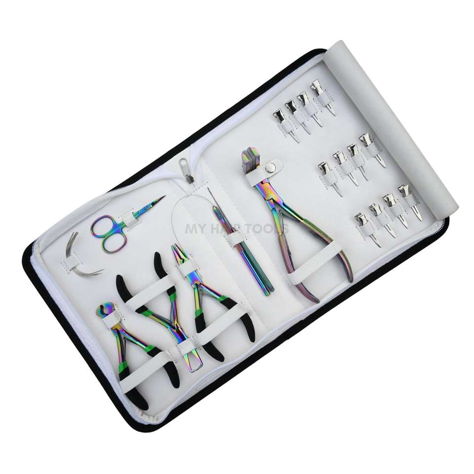 Kit d'outils pour extensions de cheveux arc-en-ciel avec pince à tapoter et coupe-collage