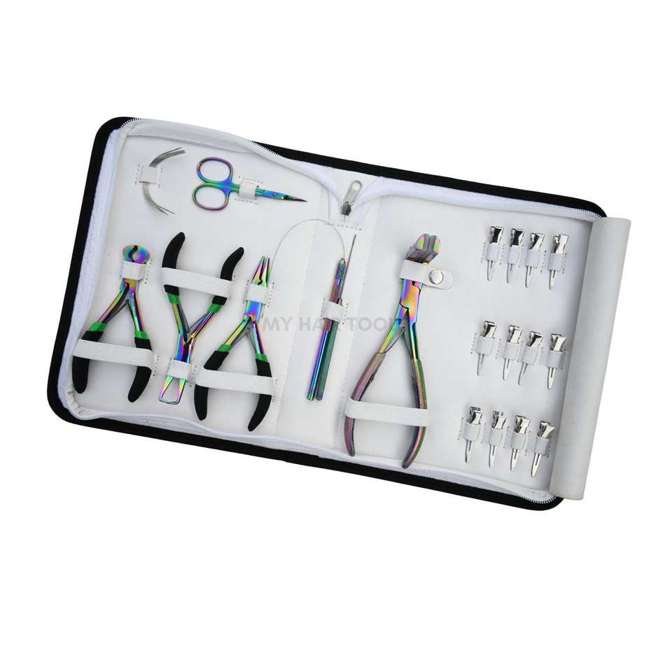 Kit d'outils pour extensions de cheveux arc-en-ciel avec pince à clipser, coupe-collage, pince à sertir et à retirer les perles, enfileur de boucles, ciseaux, aiguilles