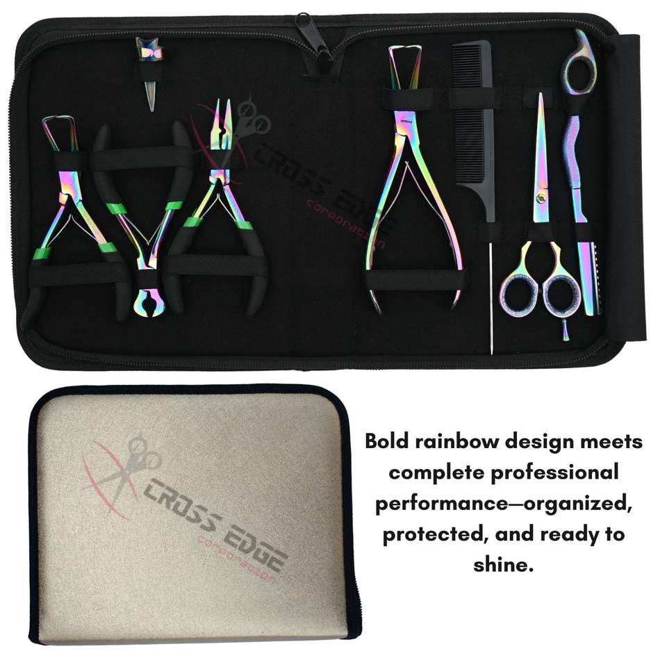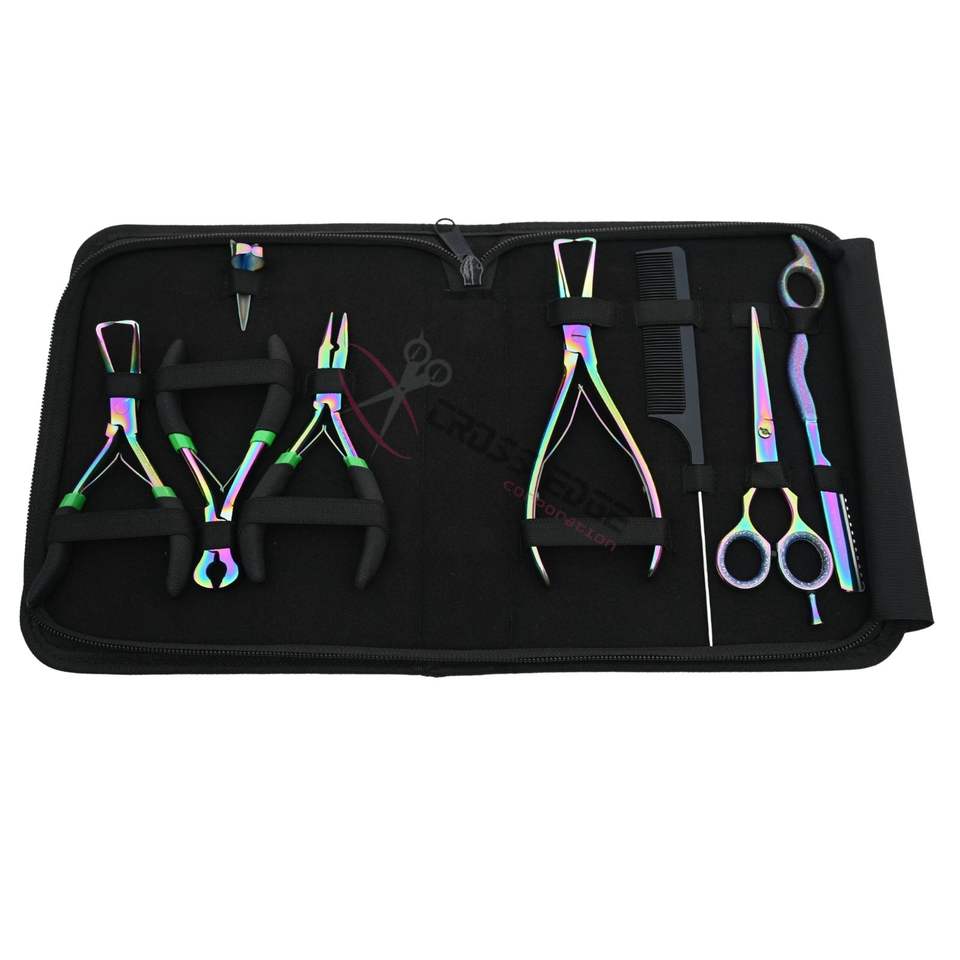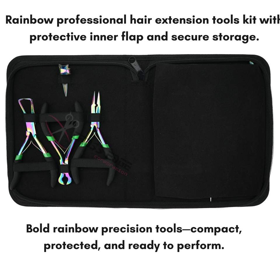 Kit d'outils pour extensions capillaires Rainbow avec pinces de pose et de retrait de micro-perles pour extensions à micro-anneaux, nano-anneaux et I-Tip