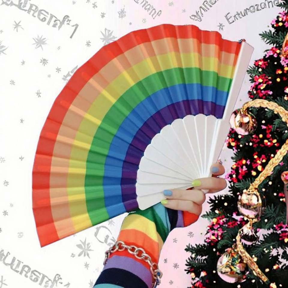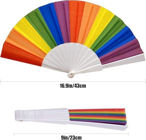 Éventail pliant arc-en-ciel en plastique durable pour spectacles de danse et décorations intérieures