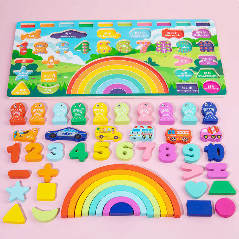 Planche logarithmique arc-en-ciel, jouets en bois colorés pour l'éducation précoce, pour enfants, bébé, regarder les images, lire les nombres, les lettres, cognitif