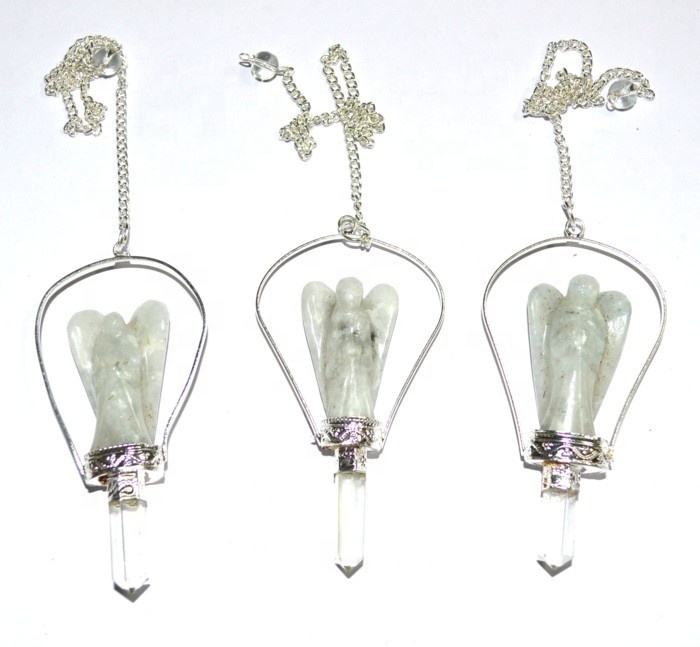 Pierre de Lune arc-en-ciel Ange Pendules avec chaîne