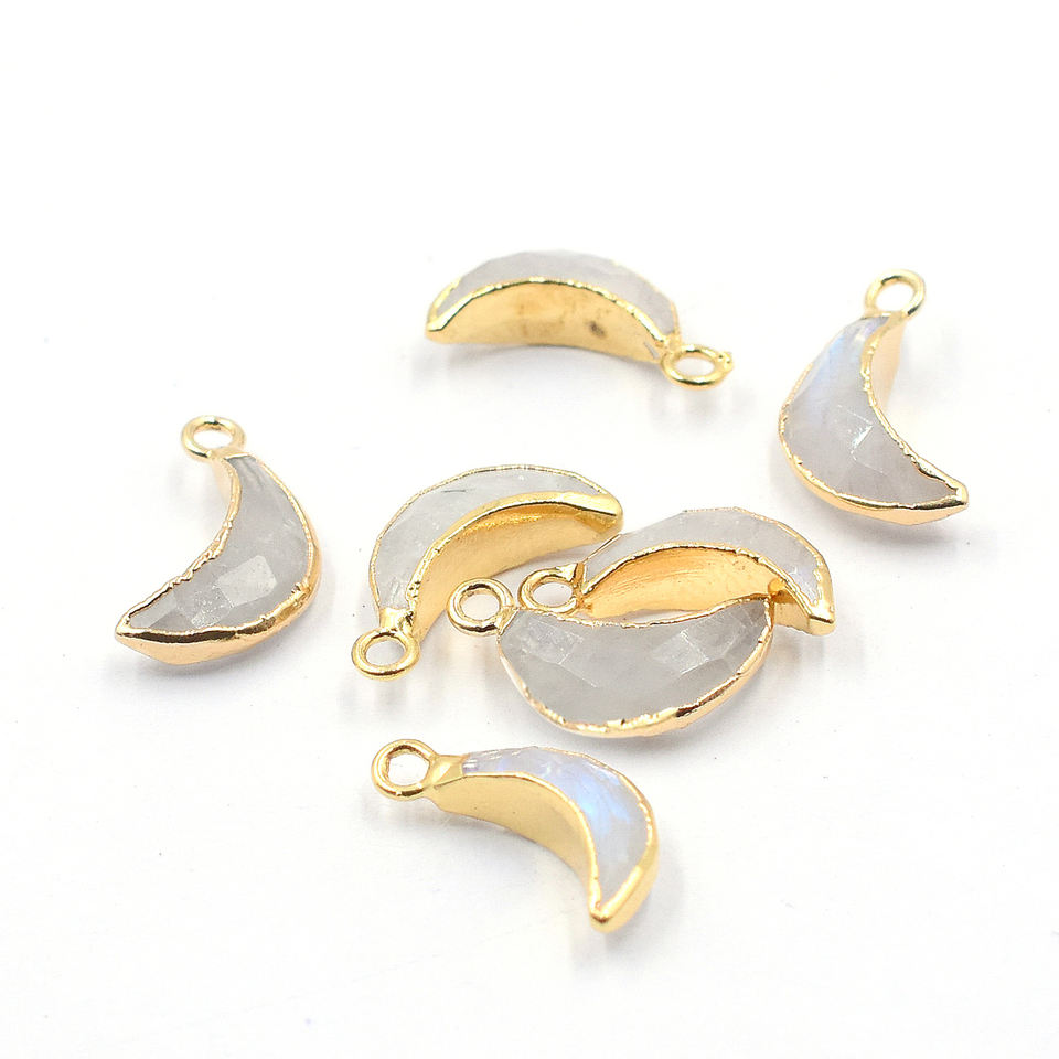 Product Name:Rainbow Moonstone 12 To 14 MM With Bail Moon Shape Gold Plated Pendant