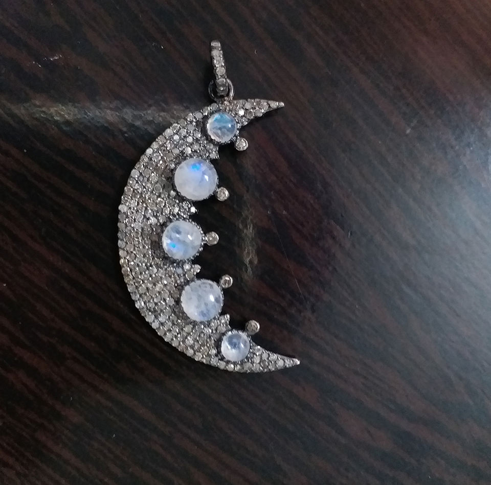 Pendentif Croissant de Lune Diamant Pierre de Lune