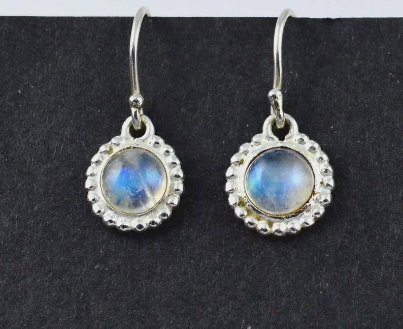 Rainbow Moonstone Earrings Handmade 925 Sterling Silver Jewelry Natural Flashy Gemstone Gift For Women