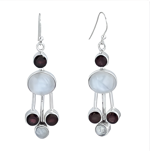 Rainbow Moonstone Garnet Multi Color Silver Dangle Earring Jewelry 925 Sterling Silver Classic Fashion Silver Plated for Women