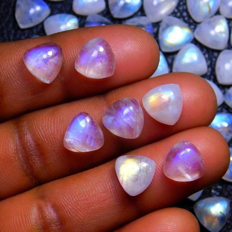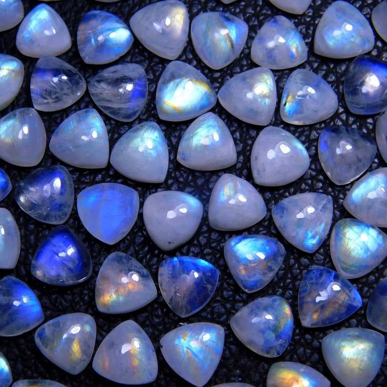 Pierre de lune arc-en-ciel trillion de pierres précieuses Cabochon faisant des bijoux naturel bleu Flashy pierre de lune arc-en-ciel 9x9mm trillion pour boucle d'oreille