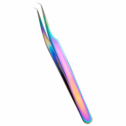 Ensemble de pinces à cils pointues multicolores effet plasma arc-en-ciel, en acier inoxydable écologique, incluant des pinces droites et courbées pour le volume