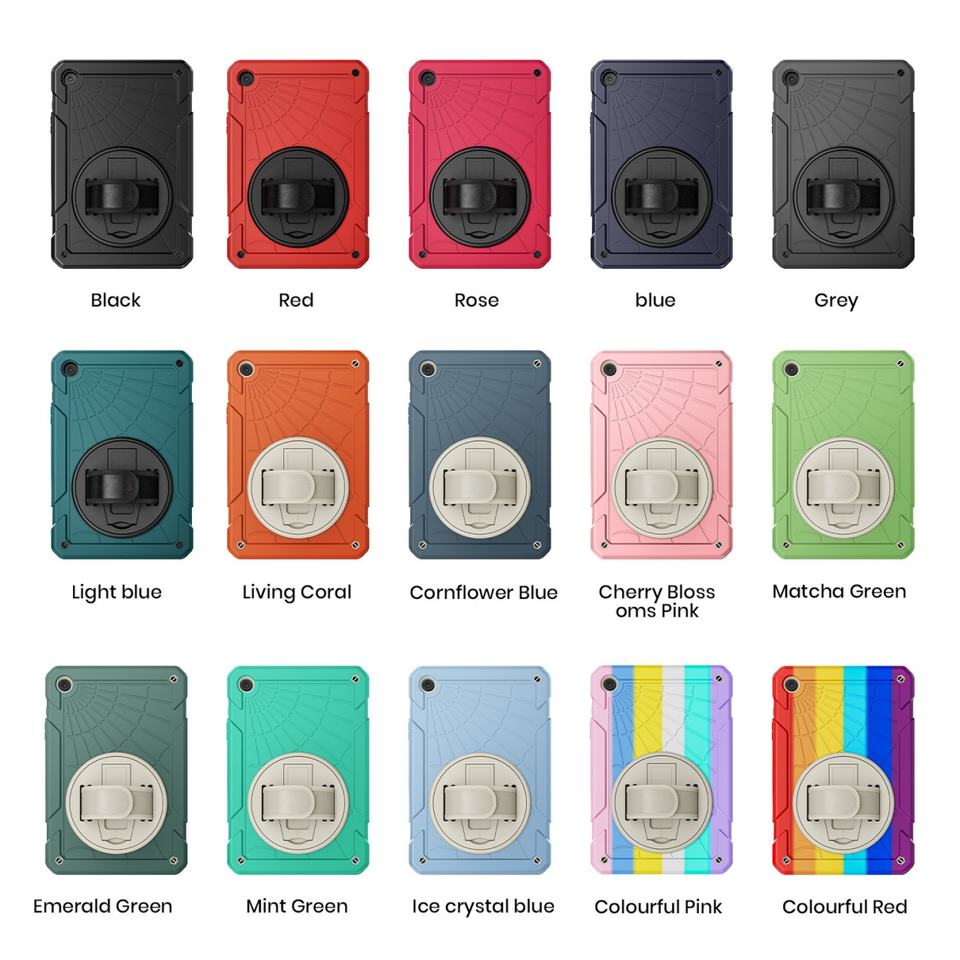 Étui de protection hybride robuste arc-en-ciel pour tablette Samsung Galaxy Tab A9 Plus avec support rotatif à 360° et dragonne antichoc