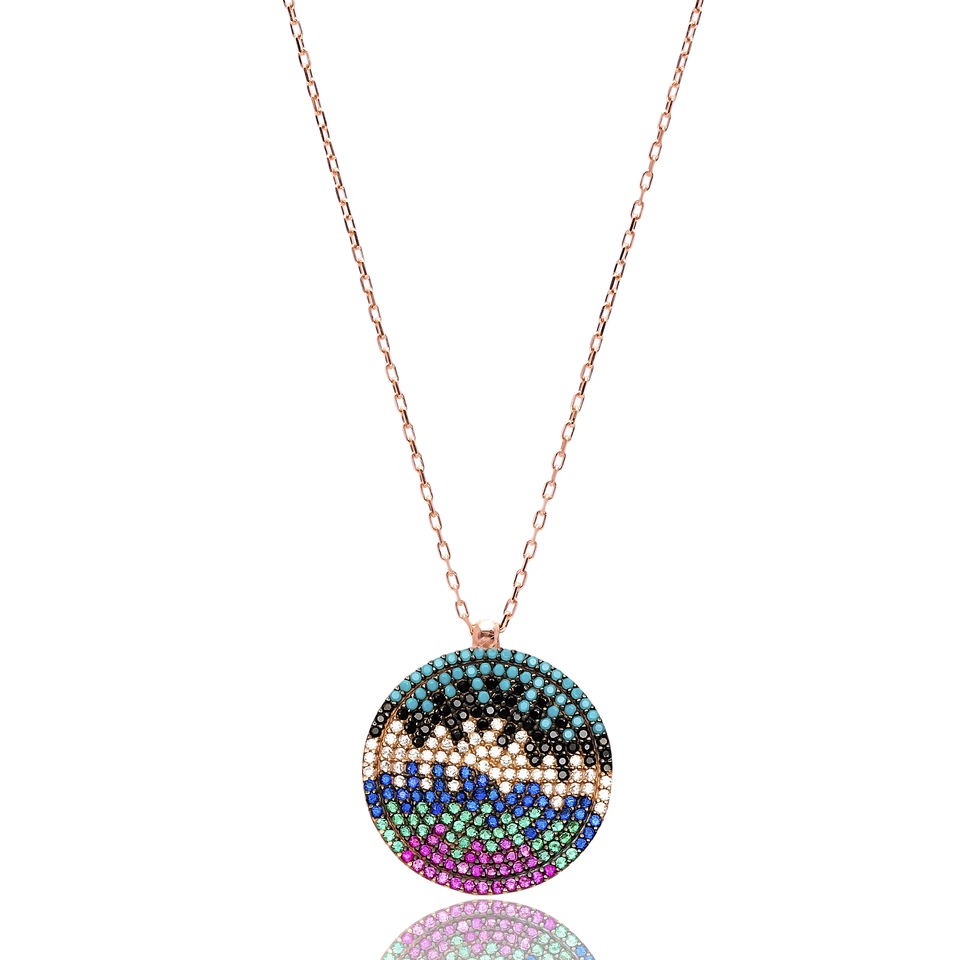Arc-en-ciel Zircon Pierre Géométrique Ronde Conception Forme Charme Pendentif Turc Fabriqué À La Main 925 Bijoux En Argent Sterling