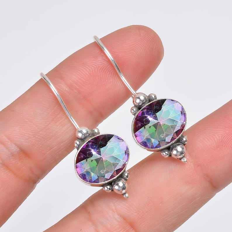 Rainbow mystic fire topaz earrings in 925 sterling silver handmade gemstone dangle earrings perfect gift for her