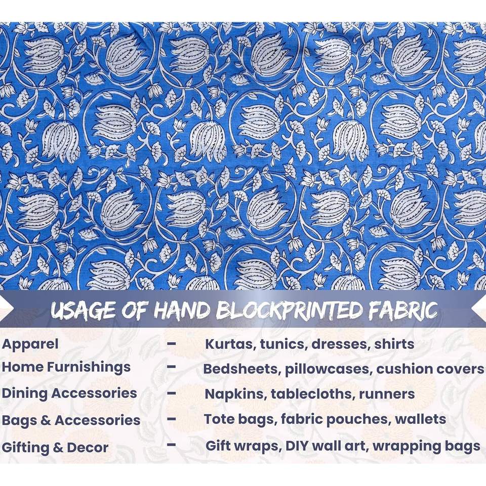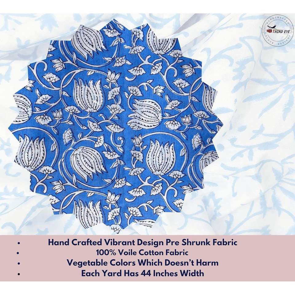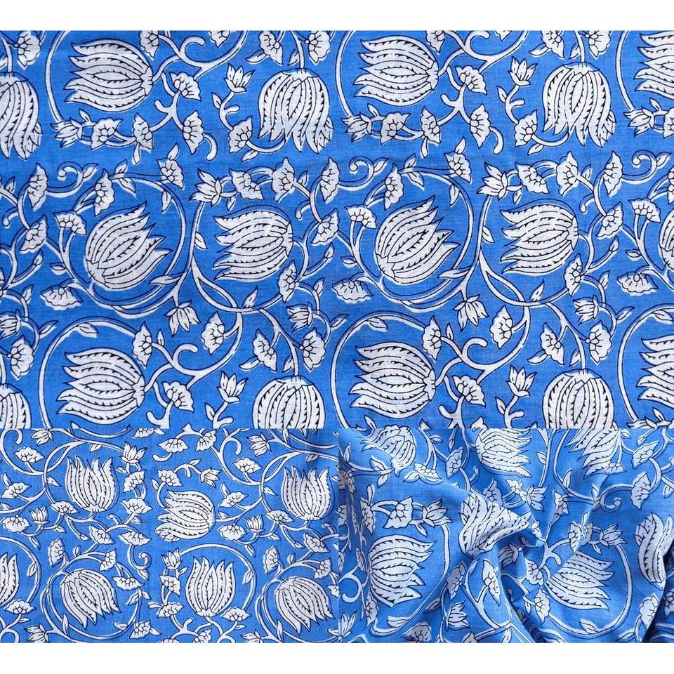 Tissu popeline tissé 100% coton bleu, imprimé à la main au bloc indien, style Rajasthani, uni 68x68, léger, pour quilting floral