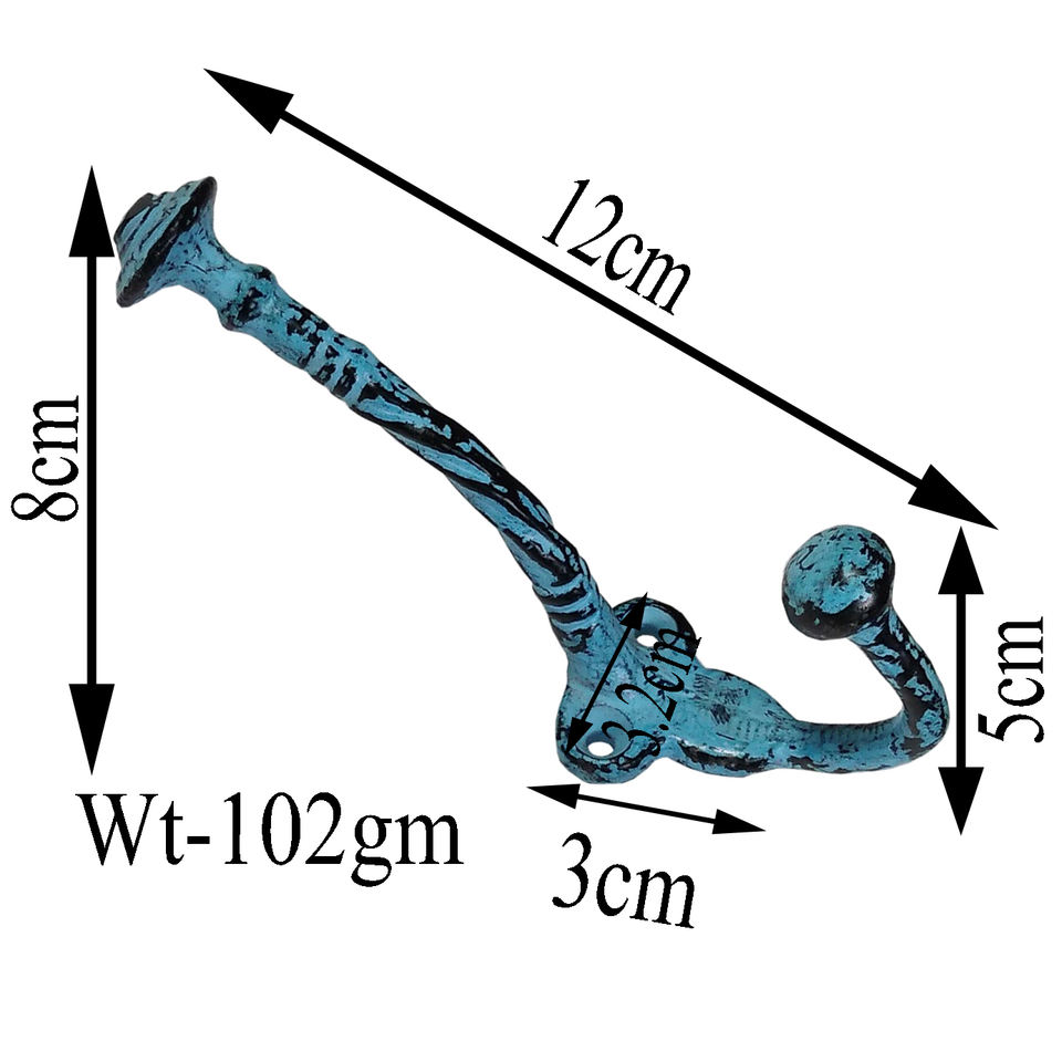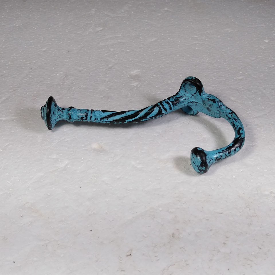 Nom du produit:Patère double pour manteau, fixation murale, finition patine verte.