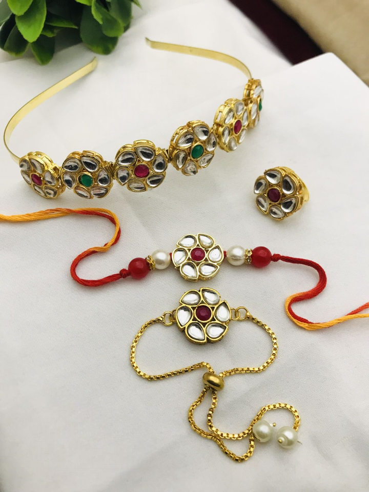 Combo cadeau Rakhi-Couple Rakhi, bague élégante et bandeau à la mode Bhaiya Bhabhi Rakhi Set Rakhi pour frère et soeur Rakshabandhan