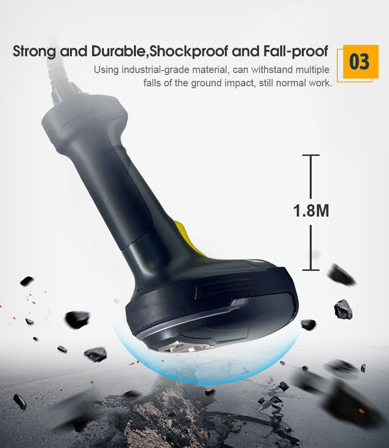 Lecteur de codes-barres industriel portable Rakinda 1D 2D 32 bits filaire Ethernet/RS232 avec capteur CMOS IP65 résolution 1,3 MP