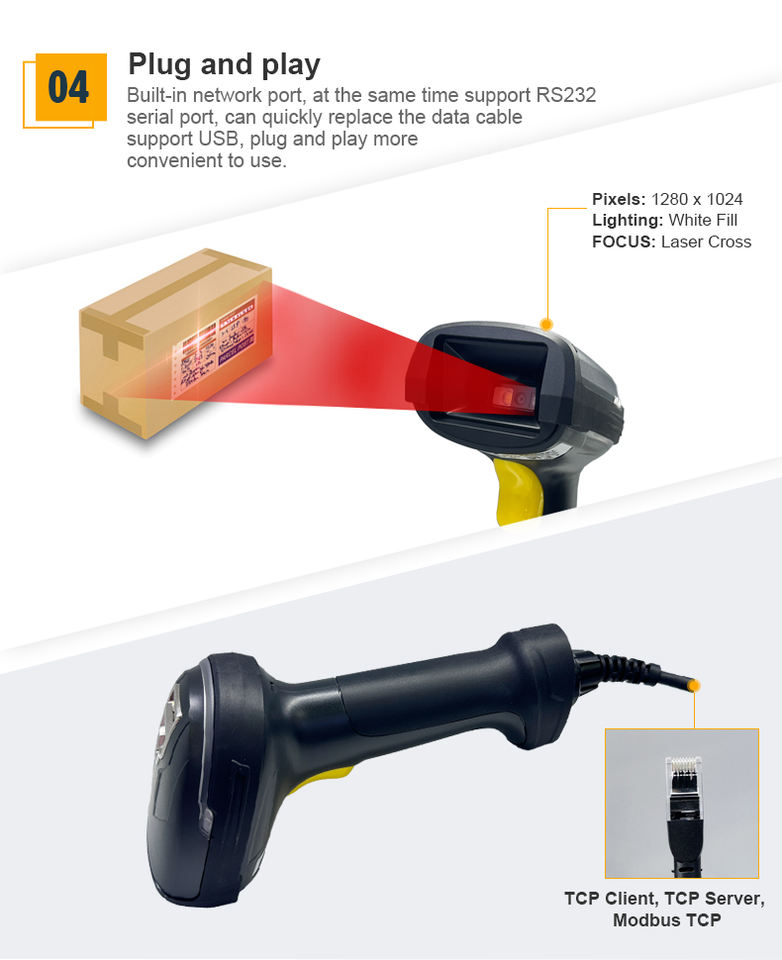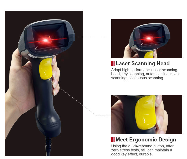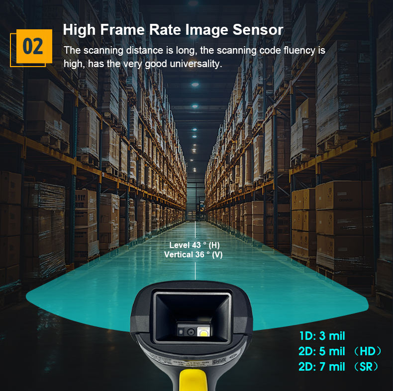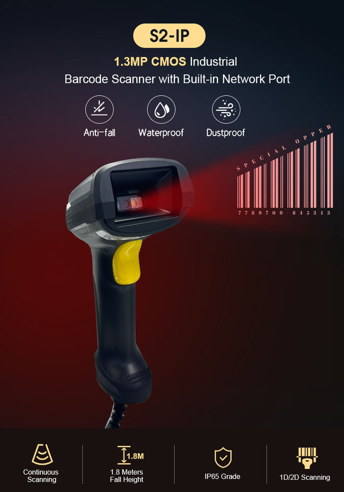 Lecteur de codes-barres USB filaire Rakinda S2-IP portable 1D 2D 32 bits avec capteur CMOS