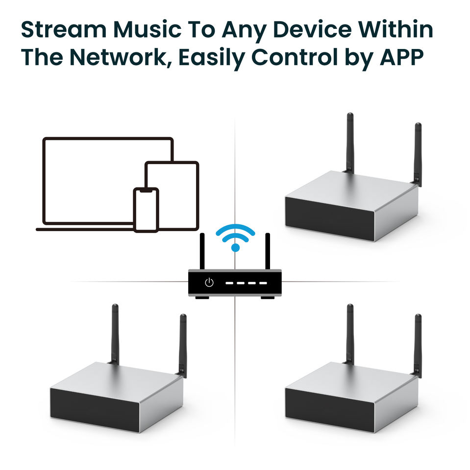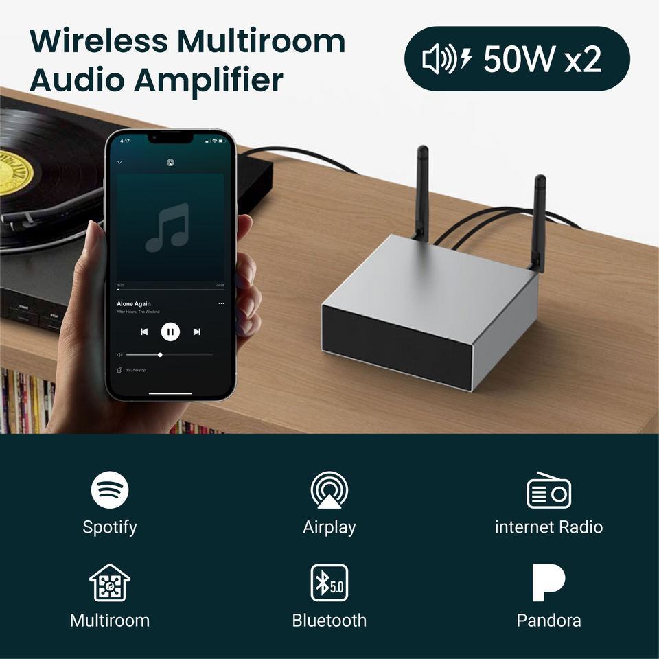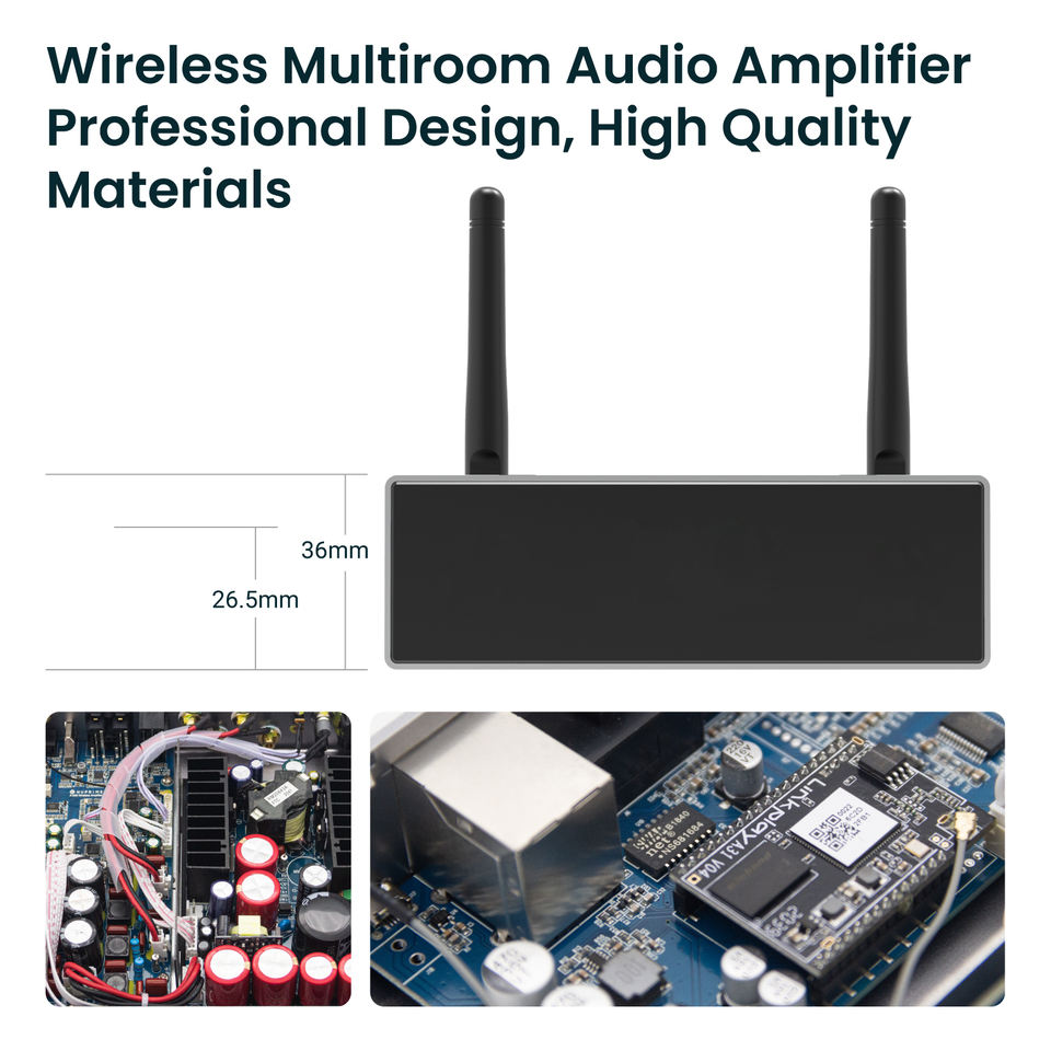 Rakoit A50+ Linkplay Airplay2 Amplificateur de Puissance Mini Multiroom Audio sans Fil Wi-Fi DAC pour Récepteur Audio-Vidéo LAB à Domicile