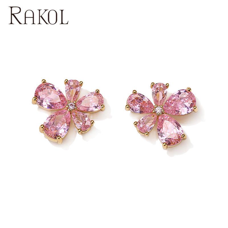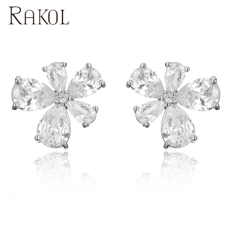 Boucles d'oreilles en argent Rakol EP5733, petites fleurs tendance, 3A CZ, bijoux