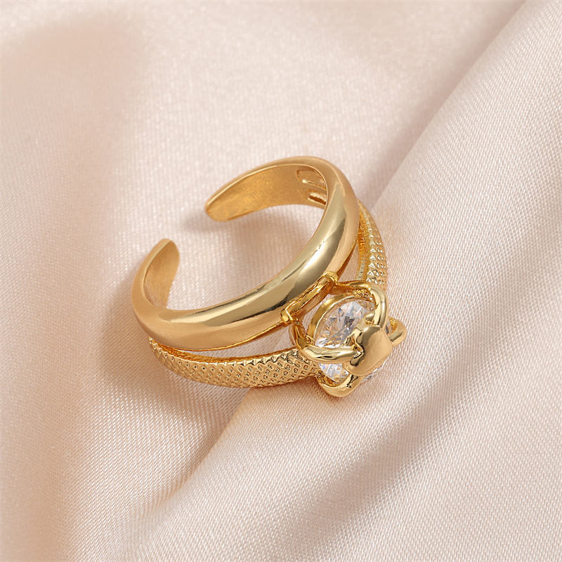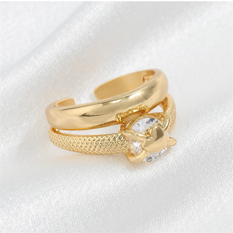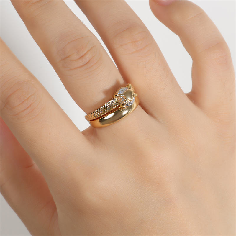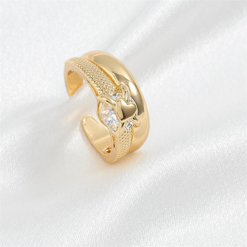 Anneaux de mode en or plaqué, simples, à double couche, ouverts, hautement polis, réglables, en forme de cœur, de la marque Rakol ZPR1037