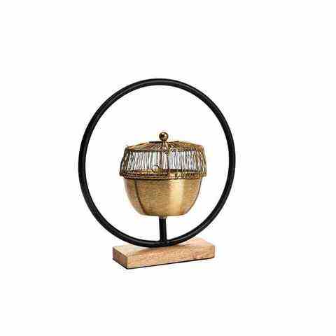 Ramadan et Eid Mini taille corps en métal plaqué or dessus en bois porte-encens Bakhoor brûleur Oud distributeur
