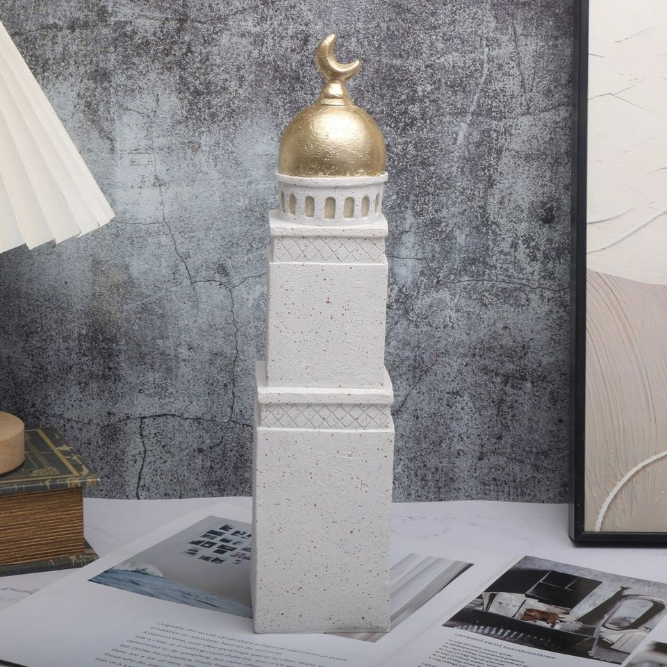 Décoration du Ramadan 2026 Artisanat en résine Décoration islamique pour la maison Modèle de phare de bureau avec lumière chaude pour créer une ambiance spirituelle