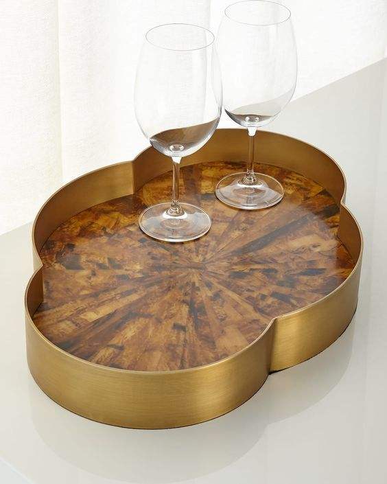 Plateau de service alimentaire pour le Ramadan Plateau à chocolat en cuir et corne en métal de grande taille Design élégant par ACMI Parfait pour servir