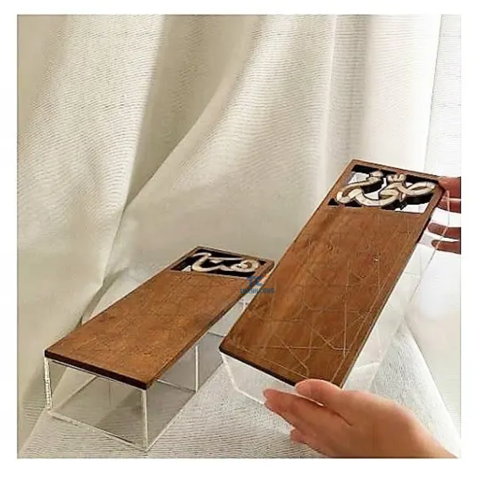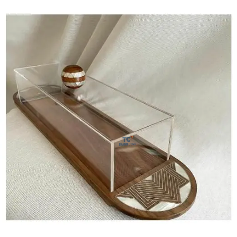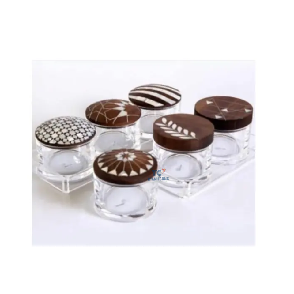 Ramadan GiftBest Modern Unique Design Home Decor Acrylique Bocaux Bois Nacre Incrustation Couvercle Conteneur pour Dessert Boîte De Rangement