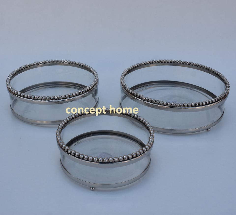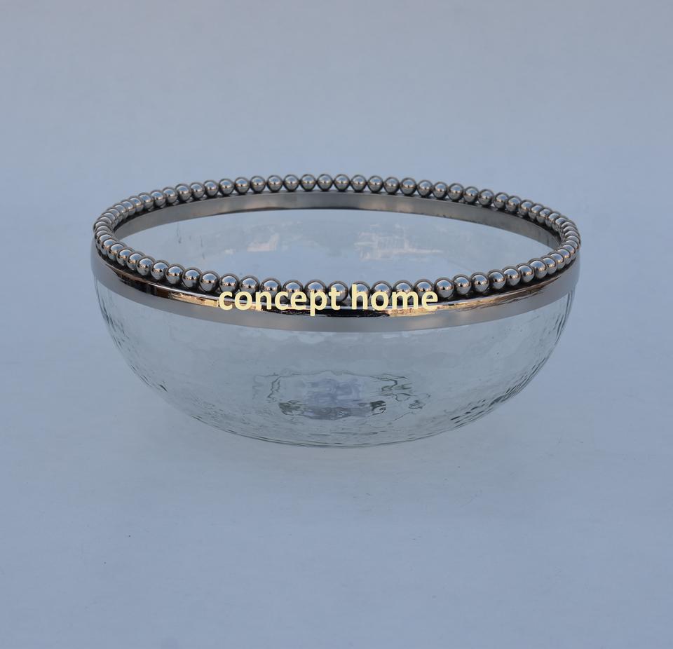 Ramadan decorative Beaded Border Glass Serving Bowl Inspired Metal for Home Dining Buffet Party Durable Eco-Friendly Tableware