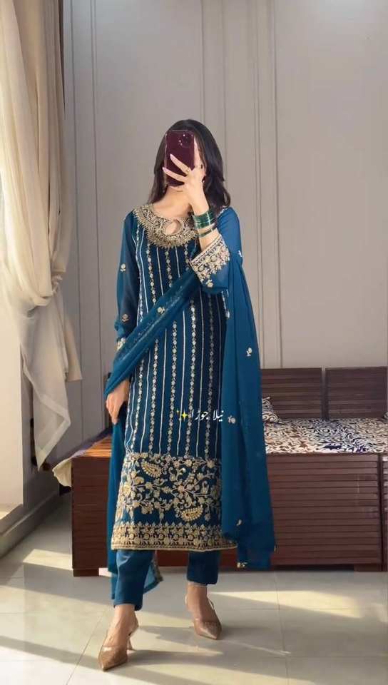 Ensemble de costume de soirée pour femme Ramdev Trading, haut et bas, avec dupatta fantaisie, en soie chinon lourde, séchage rapide, toutes saisons, broderie