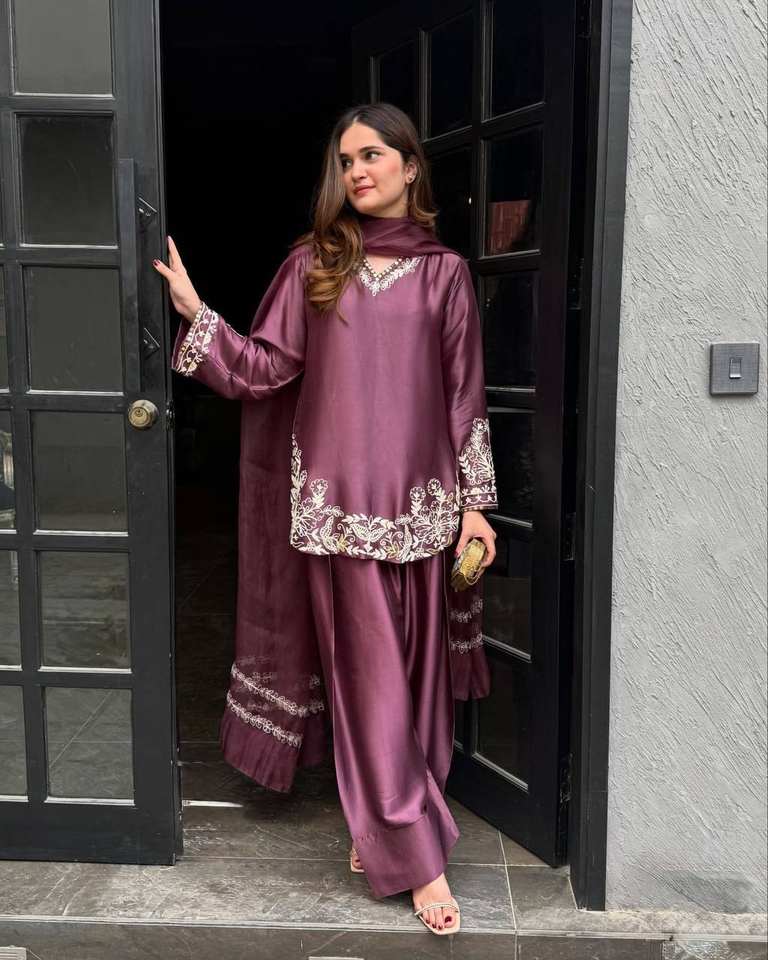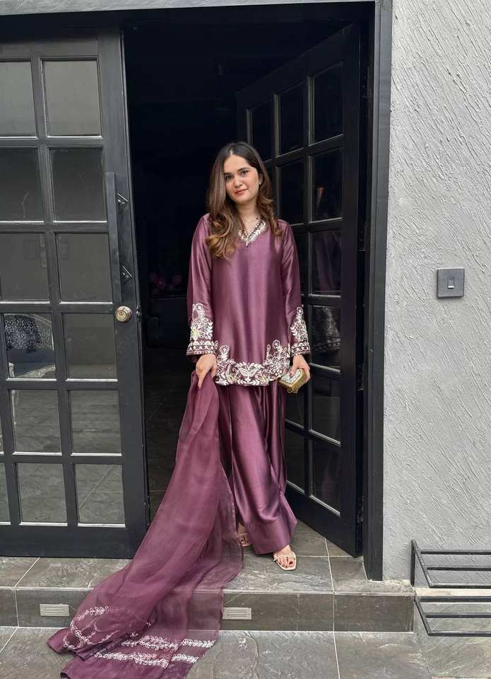 Ramdev Trading – Ensemble Kurta Kurti Réversible Style Gujarati Moderne pour Femme, en Soie Crêpe Naturelle Pure avec Bordure en Fausse Fourrure, Idéal pour Mariages et Fêtes