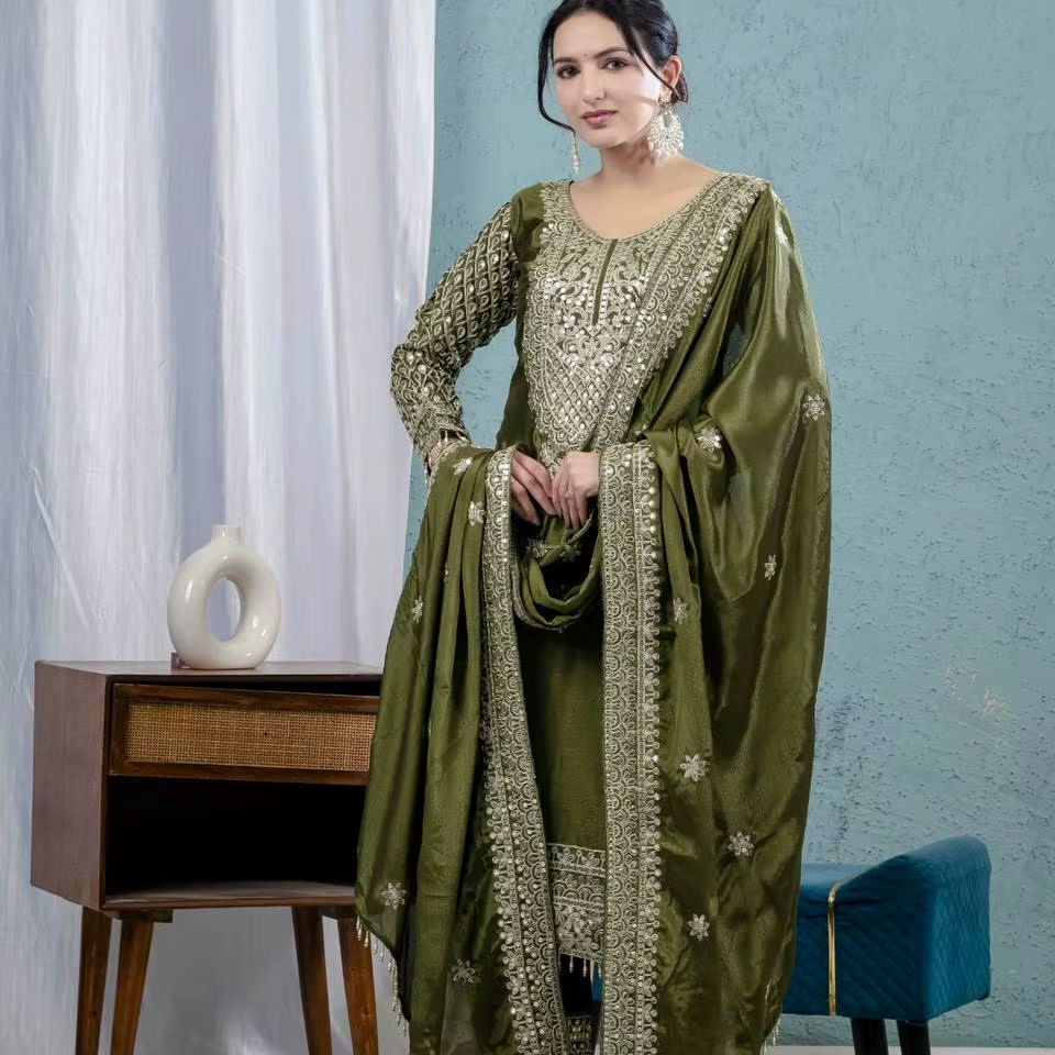Ensemble Kurta/Pantalon/Dupatta pour femme Ramdev Trading, style romain lourd, broderie, séchage rapide, style moderne, toutes saisons, mariage/fête