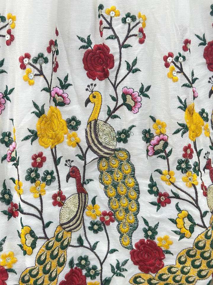Ramdev Trading Lehenga Choli traditionnel pour femme en résille, broderies et sequins, matériaux recyclés, coupe classique, longueur 3,5 m, inclus