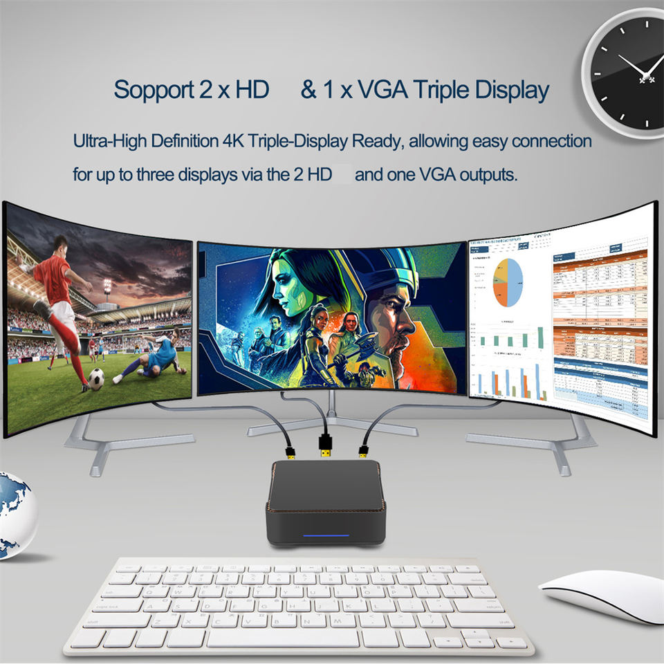 3 Displays supported N3350 J3455 4K Win10 Mini PC