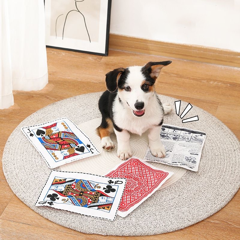 Aléatoire 1 Couleur Durable Pet Interactive Mouvement Jouet Chien Grincement Dents Résistant Aux Morsures Auto-Salut Imprimé Lettre Poker Motif Son