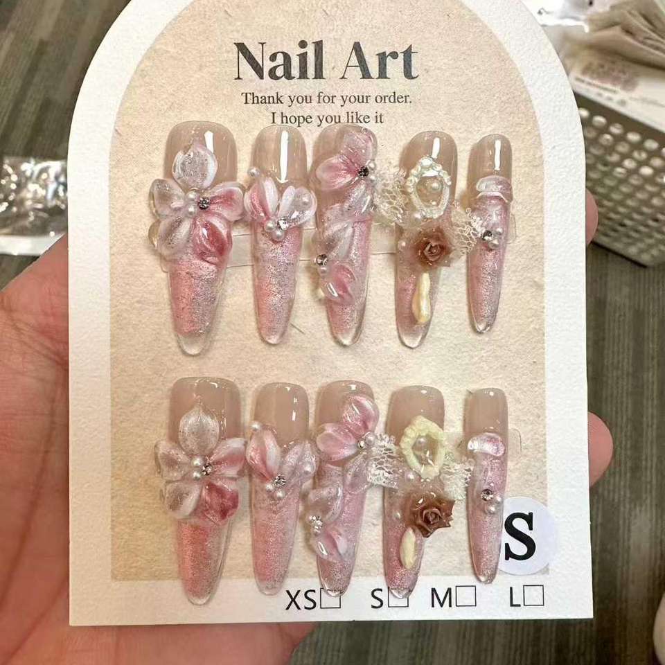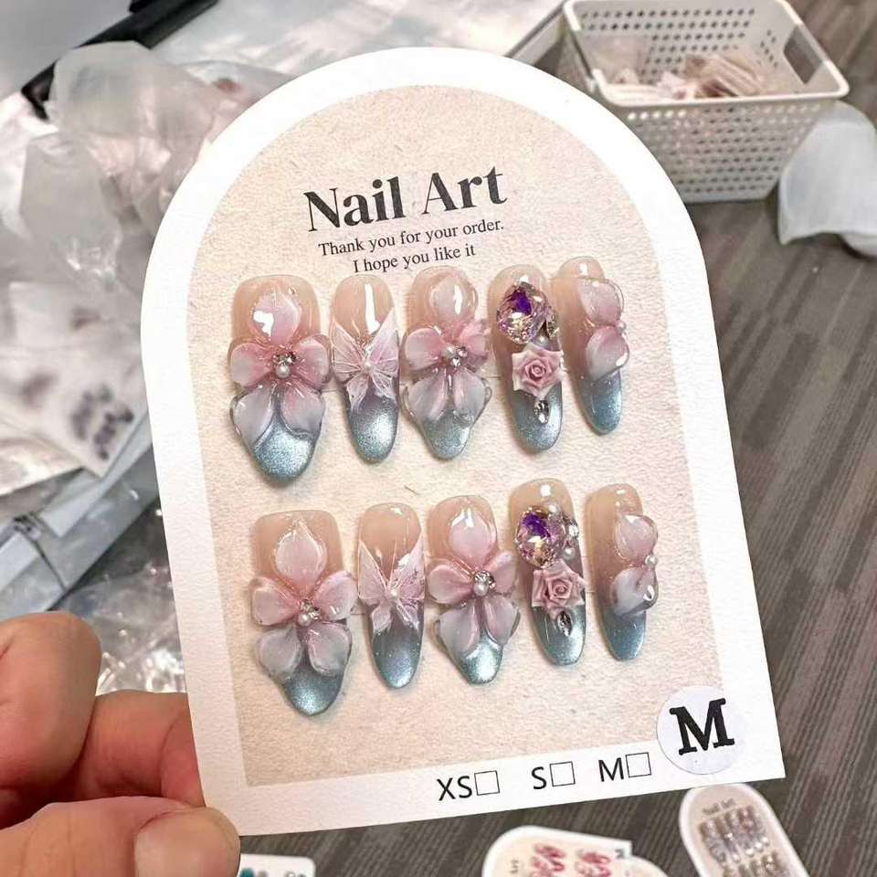 Faux Ongles 3D Fleur de Glace Faits Main Effet Brillant Qualité Supérieure Réutilisables pour Usage Quotidien et Soirées